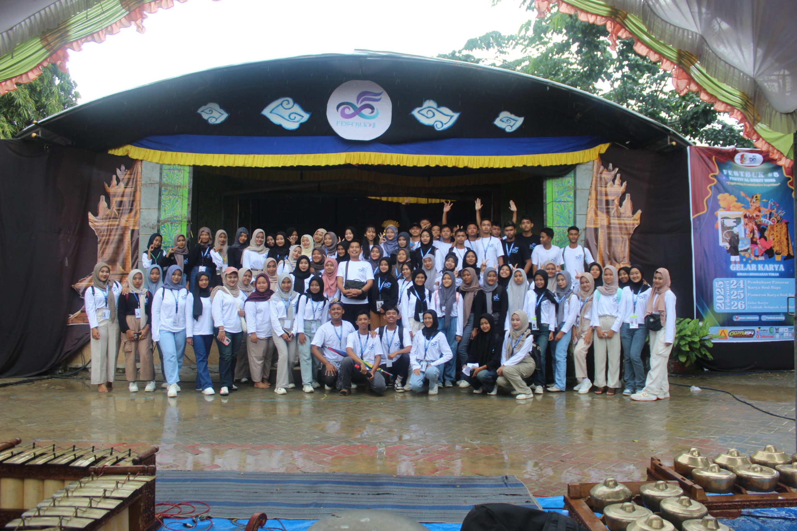 Yang membuat puncak Festival Bukit ke-8 ini semakin istimewa adalah kehadiran gamelan live yang mengiringi seluruh prosesi acara. Ini merupakan inovasi baru di SMA Negeri 1 Singgahan dan menjadi pengalaman pertama bagi banyak siswa dan guru. Kolaborasi apik dengan Sanggar Seni Ngripto Raras dari Sukorejo, Parengan, Tuban, yang dilatih oleh Bapak Eko Hardoyo dan Ki Rusdiono, menciptakan suasana yang lebih sakral dan berbudaya. Selain itu, pengrawit yang berasal dari perwakilan siswa kelas XII turut mengiringi pertunjukan kethoprak dan ludruk, menambah nuansa seni tradisional yang kuat dalam festival ini.